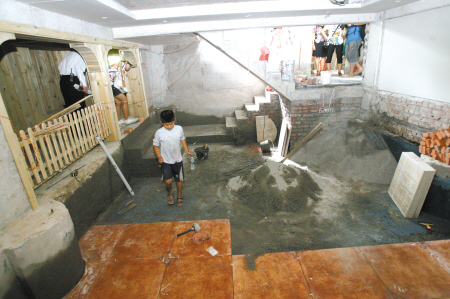 昨日,沙坪壩楊梨路,一業(yè)主私挖的地下室正在裝修。記者 吳珊 攝