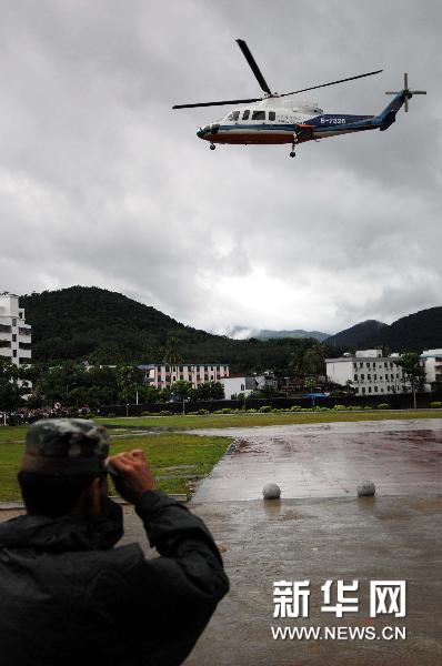 海南陵水吊羅山發生山體滑坡,10月3日15時59分,直升機起飛前往事發現場進行救援!⌒氯A社記者侯建森攝
