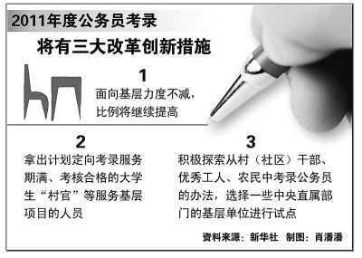記者10月10日從國家公務員局獲悉:由中組部、人力資源和社會保障部、國家公務員局統一組織實施的2010年度中央機關及其直屬機構考試錄用公務員工作自2009年9月開始,經過制定錄用計劃、發布招考公告、報名與資格審查、筆試、面試、體檢和考察、公示、審核備案等8個程序,現已全部結束。從總體看,2010年度的考試錄用工作進展順利,工作更加規范、透明,受理的有關信訪、申訴的信件和電話與往年相比有所減少,用人部門、考生和社會總體反映比較滿意。