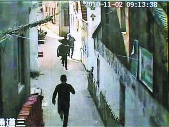 而電瓶車上一體型強(qiáng)壯的男子,也放倒了電瓶車,拔腿便逃進(jìn)小巷子內(nèi)。