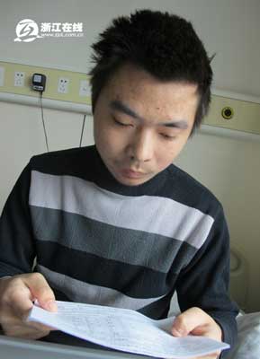 今天上午,記者在浙江省中醫院見到了這位患者,他叫楊德彪,27歲,安徽廣德人。