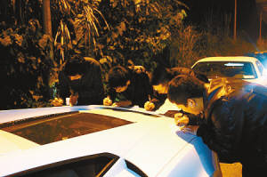 晚上6時35分,四輛跑車風馳電掣般開了過來。倉山段執勤交警鄧建明、程飛立即喊話:“跑車駕駛員,請靠邊停車接受檢查。”但四輛跑車呼嘯而去,鄧建明、程飛立即開著警車追趕。