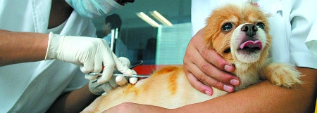 獸醫正在給小狗注射藥物 記者 歐陽祖兵 攝
