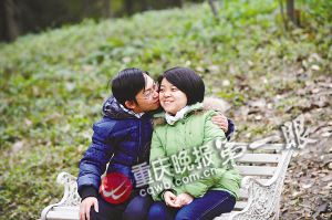 沙坪公園里,伊鴻偉給馮璐一個(gè)新年的親吻。