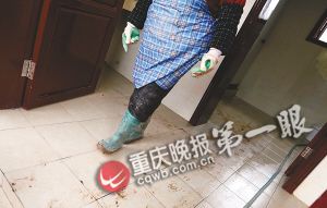 “當(dāng)官的”是物業(yè)公司保潔部主管,叫黃遠(yuǎn)容(音),她說,要求如廁者換拖鞋主要是針對在公園施工、鞋上沾泥的民工。期間,她透露,公廁被踩臟后,張大姐要把男女廁所保潔完,僅一次就需花一個多小時。