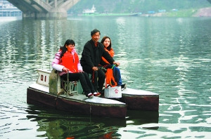 昨天下午,在合川的涪江上,他親自載人下水實驗,性能良好。雖然從自行車的原理看,并不能算是一門新的發明創造。但是,作為一個退休在家的老人,仍想著親自動手鉆研一些科技項目,增添生活的情趣,恰恰體現了老有所為、老有所樂。