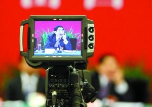 10日,袁純清回答記者提問,時長兩個小時。本報記者 韓萌 攝