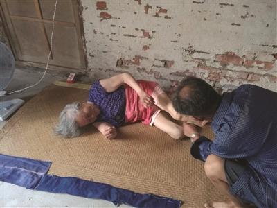 九旬老人如今躺在大兒子家中。 施廣權 攝