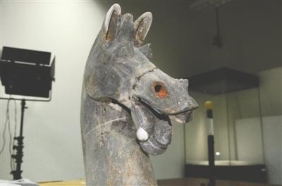 “13匹馬中,就它與眾不同,修復難度也是最大的。”文物修復師余健介紹,這批文物是今年4月送過來的,這匹陶馬是兩周前開始修復。“在修復前,我們按照器物的風格,專門制定了修復方案!