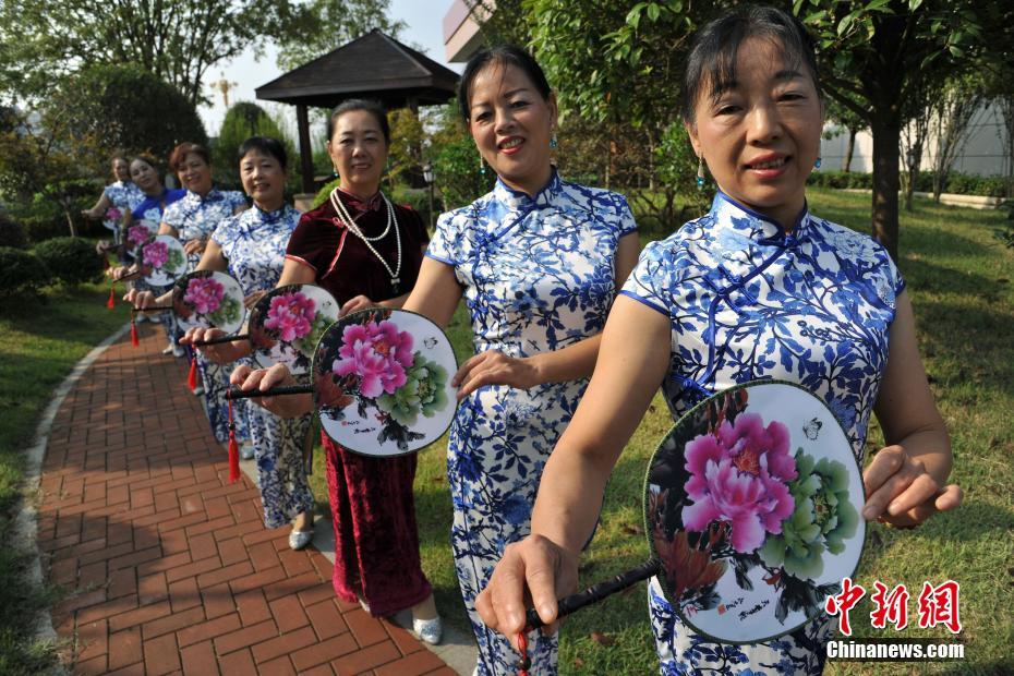 10月9日重陽(yáng)節(jié),江西省萬載縣龍湖公園內(nèi),萬載縣老年大學(xué)正舉行“旗袍秀、過重陽(yáng)”活動(dòng),20多名60歲以上的老年人身著旗袍,在龍湖公園優(yōu)雅“走秀”,以獨(dú)特的方式展現(xiàn)出她們的“夕陽(yáng)美”。鄧龍華 攝