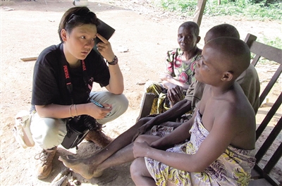 2010年暑假,彭宇潔等到了去非洲的機會,而且一待就是五個月。一個人、一個包、一個行李箱,彭宇潔就這樣來到了遙遠的喀麥隆,并在該國東部省的一個熱帶雨林中的村落里留了下來。