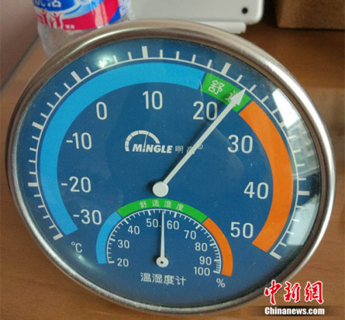 11月17日,北京天通苑一居民家中溫度計顯示室溫超過20度。中新網邱宇 攝