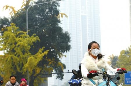 成都持續霧霾天氣,市民戴著口罩出行。 劉陳平 攝