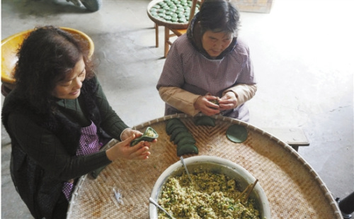 “每年快到清明節的時候,我都會包清明粿,除了自己吃,也想給在外工作的兒子媳婦帶些去嘗嘗。”一位阿姨手腳麻利,再加上周圍的鄰居一起幫忙,一會就包了一蒸屜的清明粿。鄉鎮里手工制作清明粿的氣氛濃郁,例如莪山鄉、新合鄉、百江鎮等地的鄉里鄉親,“今天你幫我家包,明天我幫你家包。包清明粿要大家一起包才有趣。”家住合村鄉的大媽一邊和大家閑話家常一邊動手包粿子。