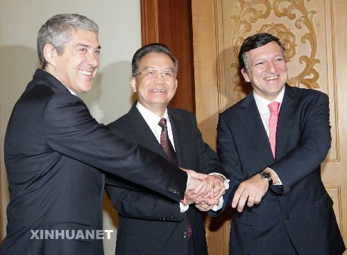 11月28日,國務院總理溫家寶在北京人民大會堂與歐盟輪值主席國葡萄牙總理蘇格拉底(左)和歐盟委員會主席巴羅佐舉行第十次中歐領導人會晤。 新華社記者姚大偉攝