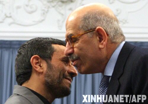 1月12日,伊朗總統(tǒng)艾哈邁迪-內(nèi)賈德(左)在首都德黑蘭與到訪的國際原子能機構(gòu)總干事巴拉迪會談前相互致意。巴拉迪11日率代表團抵達德黑蘭對伊朗進行為期兩天的訪問,這是他自2006年4月以來首次訪伊。巴拉迪呼吁伊朗當(dāng)局在核問題上“加速”同該機構(gòu)的合作步伐,同時希望伊朗的核活動“更加透明”。 新華社/法新