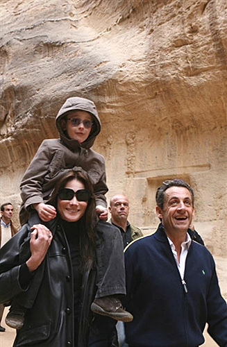1月5日,法國總統尼古拉·薩科齊與布呂尼母子在約旦佩特拉古跡參觀
