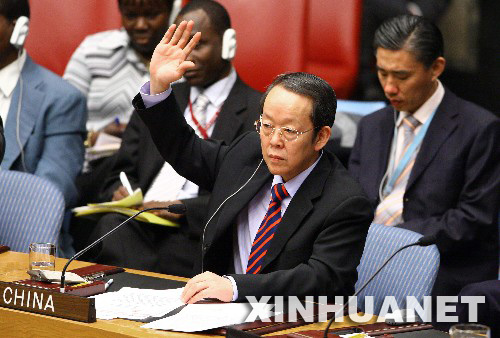 3月3日,中國常駐聯合國代表王光亞在安理會舉手投贊成票。當日,安理會在美國紐約聯合國總部表決通過了有關伊朗核問題的新決議草案。決議繼續要求伊朗暫停鈾濃縮等活動,重申致力于通過政治和外交談判和平解決問題,支持國際原子能機構發揮作用。決議還進一步加大了對伊朗實施制裁的力度。 新華社記者侯俊攝