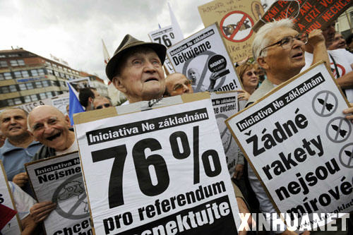 新華網布拉格7月8日電(記者孫希有)捷克“不要基地”倡議組織等8日在布拉格舉行示威游行,抗議捷克政府和美國簽署美在捷克建立反導雷達預警基地總協定。