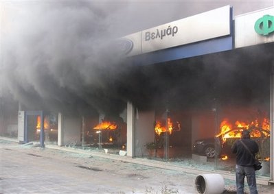 在雅典和北部的薩洛尼卡市中心,大群學生組成的示威隊伍向銀行、商店和車輛投擲燃燒瓶,警察不得不使用催淚瓦斯驅散示威人群。帕特拉斯、克里特島和科孚島也有騷亂發生。