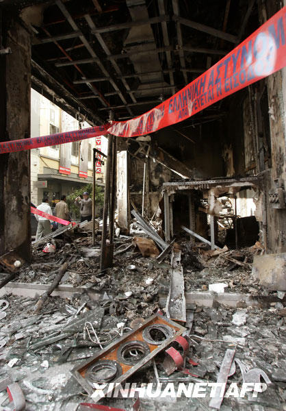 12月7日,在希臘首都雅典,一名男子從一家在騷亂中被完全毀壞的商店前走過。希臘首都雅典市中心和北部城市薩洛尼卡等地6日晚至7日凌晨發生騷亂。原本因抗議警察打死一名少年舉行示威的青年與警察發生暴力沖突,雅典市中心繁華地帶一些商店受損。 新華社/法新