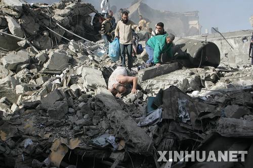 12月28日,在加沙城遭受以色列軍空襲的廢墟上,巴勒斯坦人在尋找幸存者。當日,以軍繼續對加沙地帶實施空襲。以色列戰機從27日開始向加沙地帶發動大規模空襲,迄今已造成至少271人死亡、900多人受傷。加沙急救機構稱,這是自1967年中東戰爭以來以軍襲擊所造成的巴勒斯坦人單日死亡人數最多的一次。新華社發