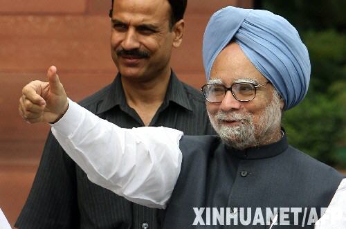 圖為2008年7月21日,印度總理辛格抵達新德里的特別會議會場。新華社/法新