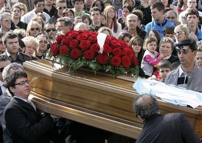 意大利中部城市拉奎拉的居民8日為地震中遇難的人舉行了首批葬禮。由于震區(qū)目前余震不斷,所以從廢墟中挖掘更多幸存者的希望越來越小。星期五將在拉奎拉為地震死難者舉行一個集體葬禮,這一天意大利全國將為死難者哀悼。