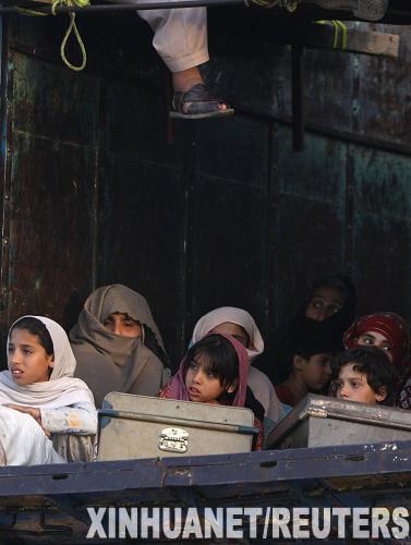 5月10日,在巴基斯坦北部馬爾丹和馬拉根德交界地區,巴士兵和撤離的平民在路上相會。巴基斯坦軍方10日發表聲明說,在過去24小時里,巴安全部隊在該國西北部斯瓦特河谷及鄰近地區打死了大約200名武裝分子。隨著打擊塔利班武裝分子的軍事行動的深入,巴安全部隊要求居民撤離斯瓦特山谷地區并實施宵禁。新華社/路透