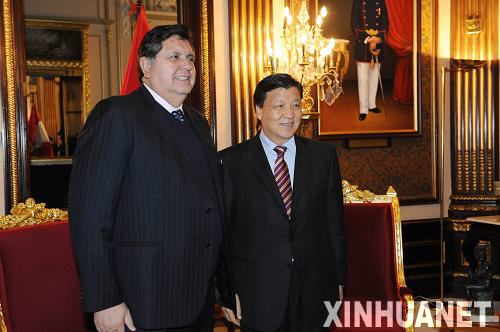 劉云山首先轉(zhuǎn)達(dá)了中共中央總書記、中國(guó)國(guó)家主席胡錦濤對(duì)加西亞總統(tǒng)的親切問候。劉云山說,中秘自1971年建交以來,兩國(guó)關(guān)系發(fā)展順利。2008年兩國(guó)元首成功實(shí)現(xiàn)互訪,中秘宣布建立戰(zhàn)略伙伴關(guān)系,使雙邊關(guān)系進(jìn)入了新的階段,中秘自由貿(mào)易協(xié)定的簽署對(duì)中秘經(jīng)貿(mào)關(guān)系發(fā)展具有重要意義。兩國(guó)人文領(lǐng)域的交流與合作勢(shì)頭良好。中方高度贊賞秘魯政府在臺(tái)灣、涉藏等問題上給予中國(guó)政府的堅(jiān)定支持。中方愿與秘方一道,不斷深化兩國(guó)戰(zhàn)略伙伴關(guān)系,努力拓展兩國(guó)合作的深度和廣度。