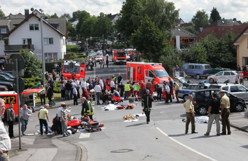 據德國媒體報道,當局出動5架救護直升機和7輛救護車搶救運送傷員。