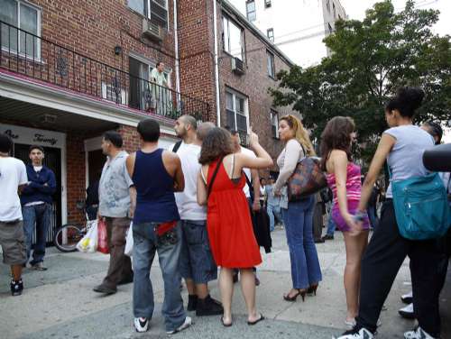 紐約反恐人員突擊搜查皇后區一幢住宅,位宅內的居民在樓外等候。