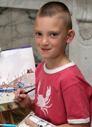 據悉,這位名叫基隆·威廉姆森(Kieron Williamson)的男童居住在英國東部小城霍爾特,他有著令其他畫家傾羨的藝術才華和繪畫技巧。當地人把他和畢加索相比,后者幼年成才并成為20世紀最受矚目的畫家。