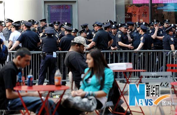 5月2日,警察在美國紐約時報廣場集結準備進行巡邏。