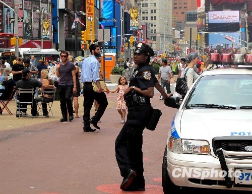 5月2日,紐約時(shí)報(bào)廣場(chǎng)依舊人流如織,絲毫不受1日晚間那一沒(méi)被引爆的汽車(chē)炸彈事件影響。但2日時(shí)報(bào)廣場(chǎng)警力增多,圖為女警在廣場(chǎng)巡視。1日晚間,一輛停于時(shí)報(bào)廣場(chǎng)的日產(chǎn)車(chē)冒煙并發(fā)出輕微爆破聲,附近的小販報(bào)警后,紐約警察從車(chē)內(nèi)清理出大量爆炸物,幸而沒(méi)引發(fā)更大的災(zāi)難,紐約市長(zhǎng)彭博稱(chēng)“躲過(guò)一劫”。 中新社發(fā) 孫宇挺 攝