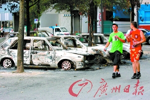 警方說(shuō),50多輛汽車、兩家商店和一些建筑設(shè)施遭焚。