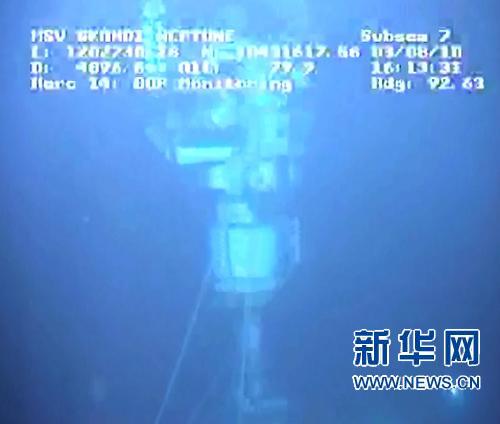 這張8月3日英國石油公司的視頻截圖顯示的是墨西哥灣海底漏油油井上的控油裝置。英國石油公司當(dāng)天在一份新聞公報(bào)中說,公司3日開始實(shí)施“靜滅法”工程,封堵墨西哥灣漏油油井。所謂“靜滅法”就是把大量海底泥漿和水泥通過控油罩注入漏油井,以封住井口。新華社發(fā)
