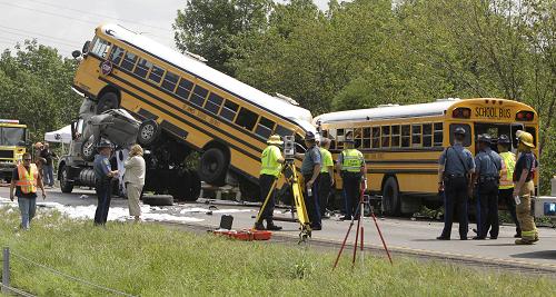 密蘇里交通管理當局稱,事故發生在當地時間上午10點15分,一輛校車與一輛小型卡車相撞后,另外一輛校車又撞在前輛校車后部。兩校車上都滿載學生。