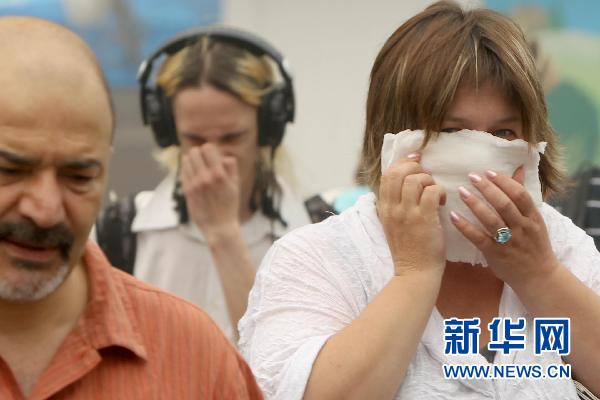 8月6日,市民走在煙霧籠罩的俄羅斯首都莫斯科街頭。當(dāng)日,森林火災(zāi)的煙霧繼續(xù)籠罩莫斯科,煙霧刺眼嗆鼻,讓市民不得不戴上口罩或者捂著手帕出行。 新華社記者魯金博攝