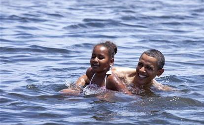 奧巴馬帶女兒在墨西哥灣游泳。
