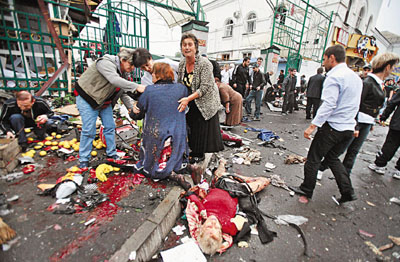 據香港《文匯報》10日報道,俄羅斯南部北奧塞梯共和國一個市場9日發生自殺式汽車炸彈襲擊,造成17人死亡、133人受傷。今次是3月份莫斯科地鐵連環炸彈襲擊以來,俄羅斯最血腥的恐襲,總統梅德韋杰夫下令當局全力緝兇,莫斯科警方已加強對市場等地方的安保,并仔細檢查進入首都的交通工具。