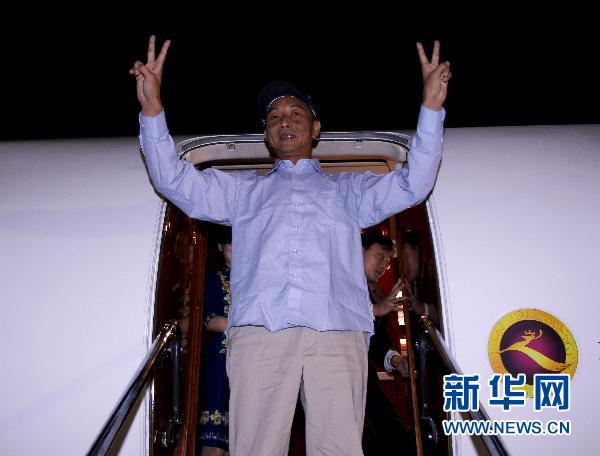 9月25日1時12分,由外交部和農業部組成的聯合工作組已接護中國漁船船長詹其雄,乘坐中國政府包機啟程回國。新華社記者陳建力攝