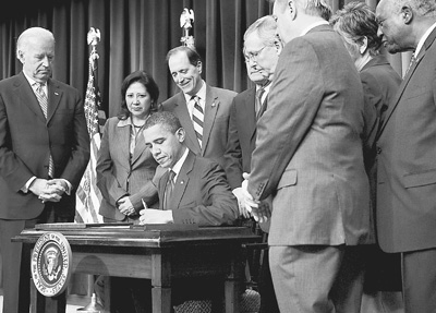 12月17日,美國總統(tǒng)奧巴馬(中)在首都華盛頓簽署減稅延期妥協(xié)法案。新華社發(fā)