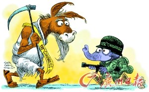 在國(guó)會(huì),驢象兩黨“分而治之”固然能防止一黨獨(dú)大,卻難免因此引發(fā)政治僵局,考驗(yàn)總統(tǒng)奧巴馬的政治技巧。