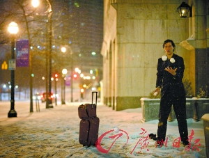 近日,亞特蘭大出現(xiàn)罕見積雪,行人放下行李玩起雪球。