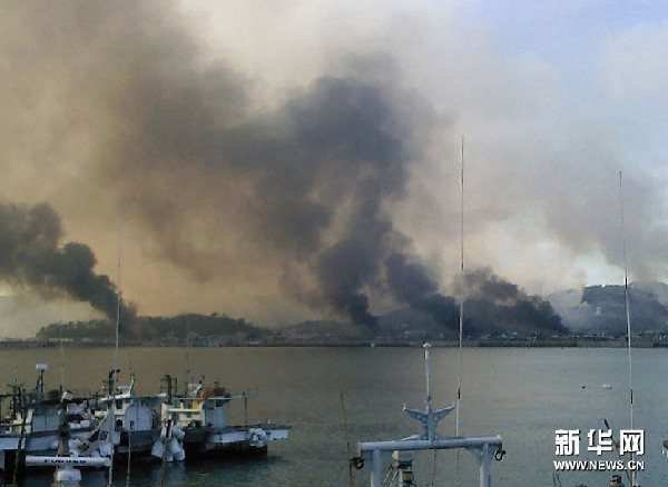 11月23日,韓國西部延坪島上硝煙滾滾。