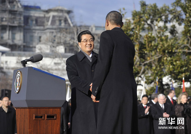 1月19日,美國總統奧巴馬在華盛頓白宮舉行隆重儀式,歡迎中國國家主席胡錦濤對美國進行國事訪問。新華社記者張軍攝
