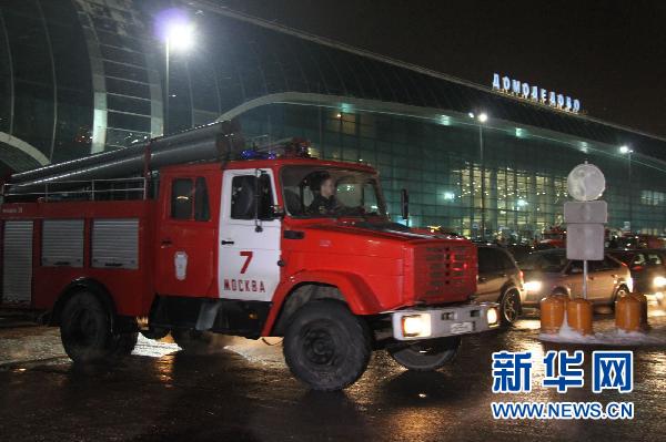 1月24日,救援車輛在俄羅斯莫斯科多莫杰多沃機場外駛過。當日,莫斯科多莫杰多沃機場發生爆炸事件,目前死亡人數已上升到35人。新華社記者魏大方攝