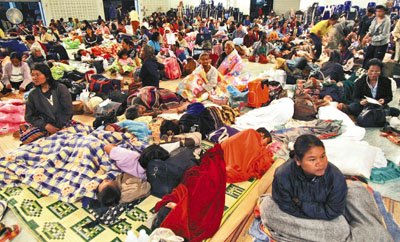 圖片說明:泰國一個臨時收容所內住滿逃難的邊境村民。