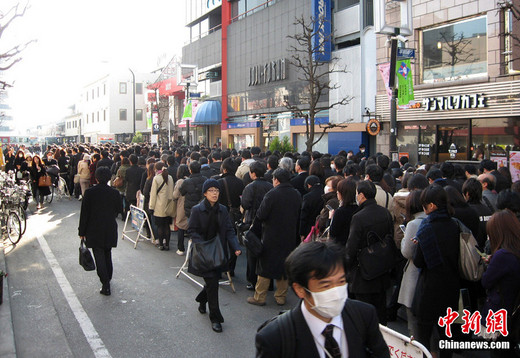 3月14日,日本迎來地震后首個工作日,位于東京鬧市區的秋葉原站只開放少量班車,上班一族排著長長的隊伍等待列車。受強震影響,日本災區部分港口、車站、公路、機場停運或關閉,民眾出行受阻。